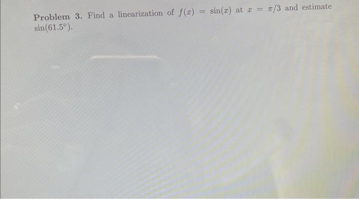 Solved Find a linearization of f(x)= sin(x) at x=3 and | Chegg.com