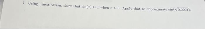 Solved 1. Using linearization, show that sin(x)≈x when x≈0. | Chegg.com
