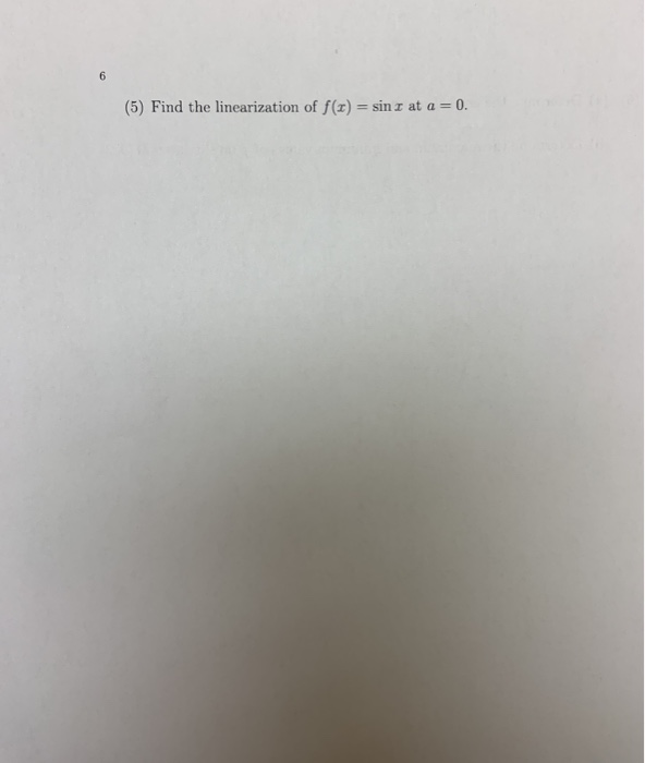 Solved (5) Find the linearization of f(1) = sin x at a=0. | Chegg.com