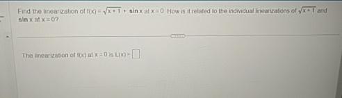 Solved Find the linearization of f(x)-Vx+1+ sin x at x-o How | Chegg.com
