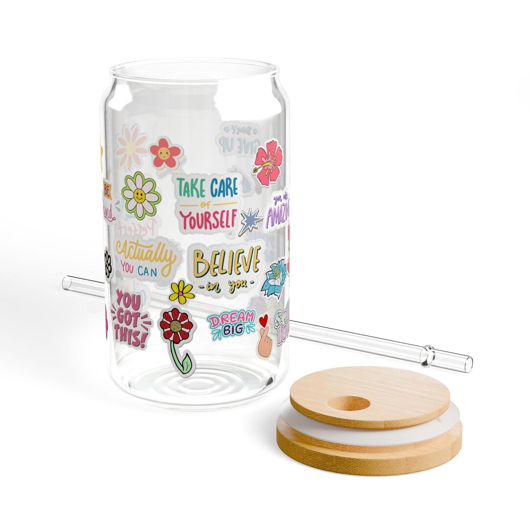 Motivational Sipper Glass, Self Motivation Sticker Print Glass ...