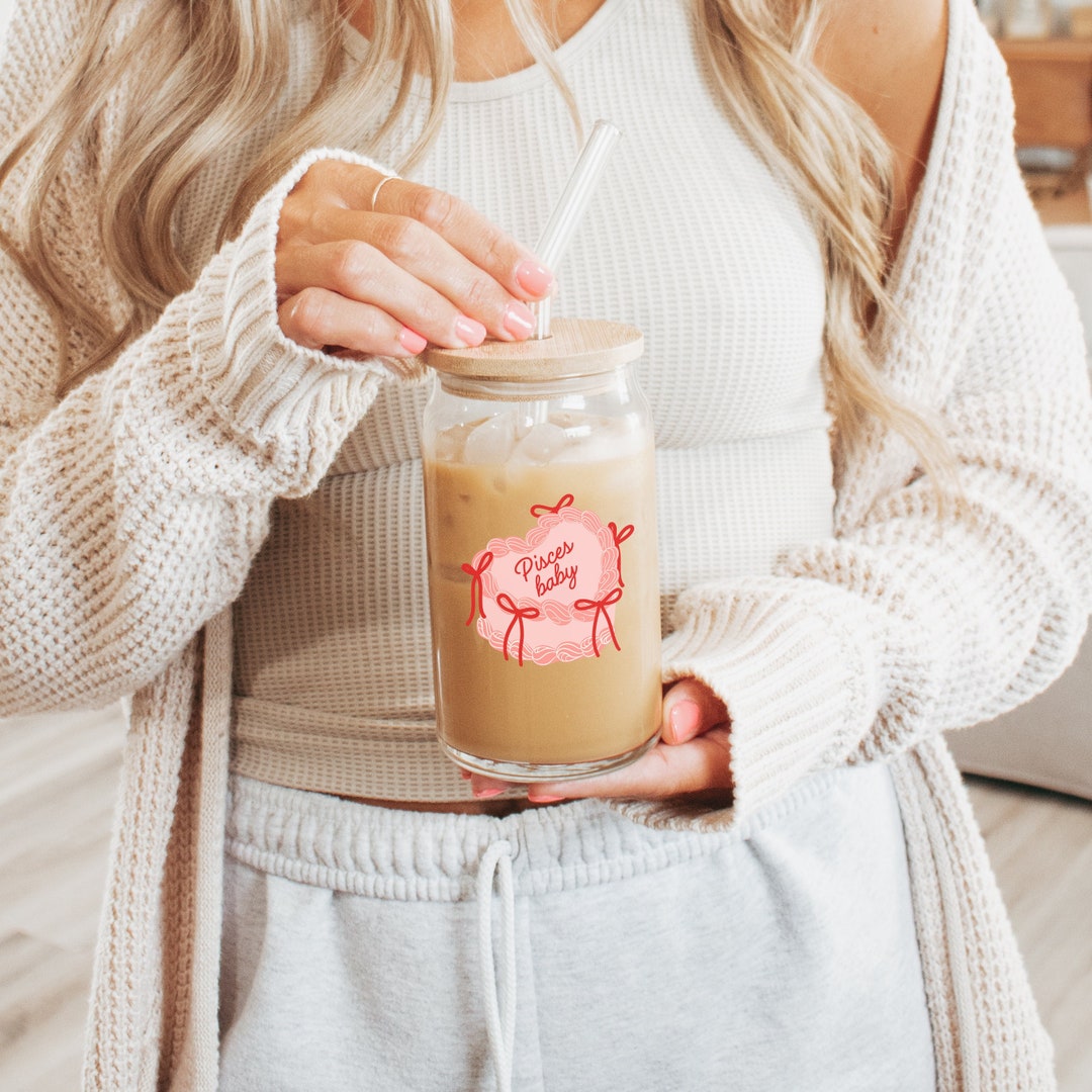 Zodiac Sipper Glass Tumbler Pisces Coquette Cake Sticker Coffee Glass ...