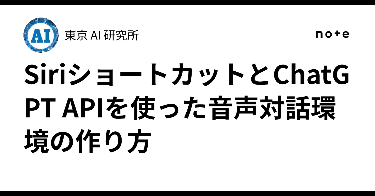 SiriショートカットとChatGPT APIを使った音声対話環境の作り方|東京 AI 研究所
