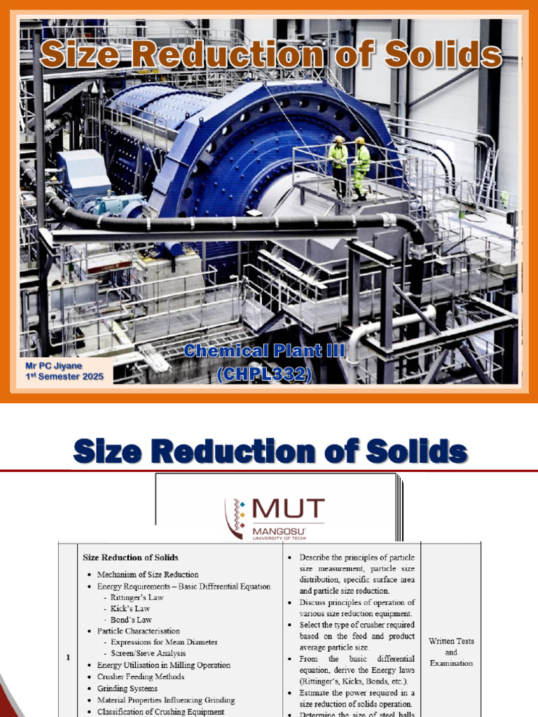 CHPL332 Size Reduction of Solids - Semester 1-2025 | PDF | Mill ...