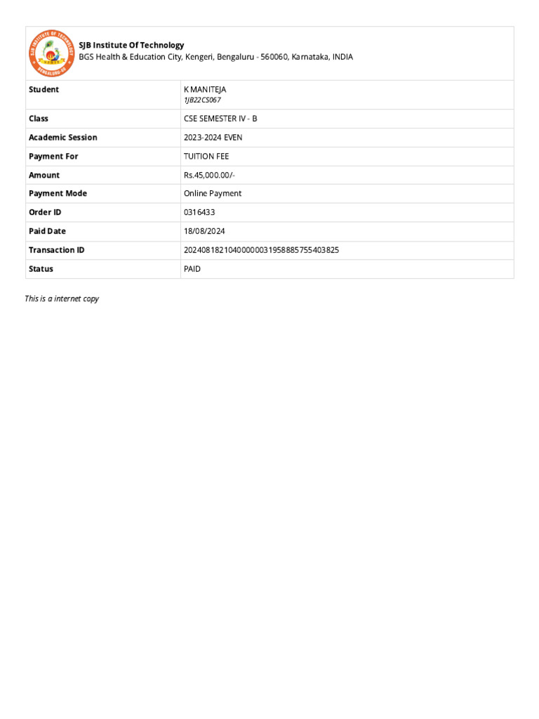 013A0553 – SJB INSTITUTE OF TECHNOLOGY