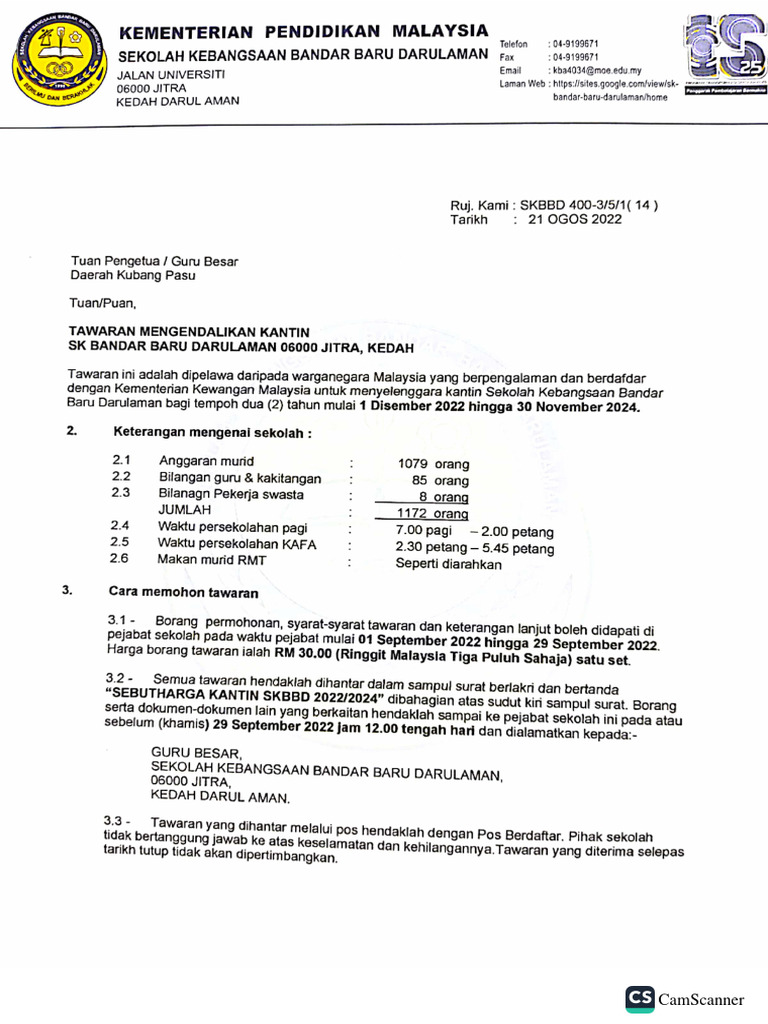 Tawaran Tender Kantin SKBBD 2022-2024 | PDF