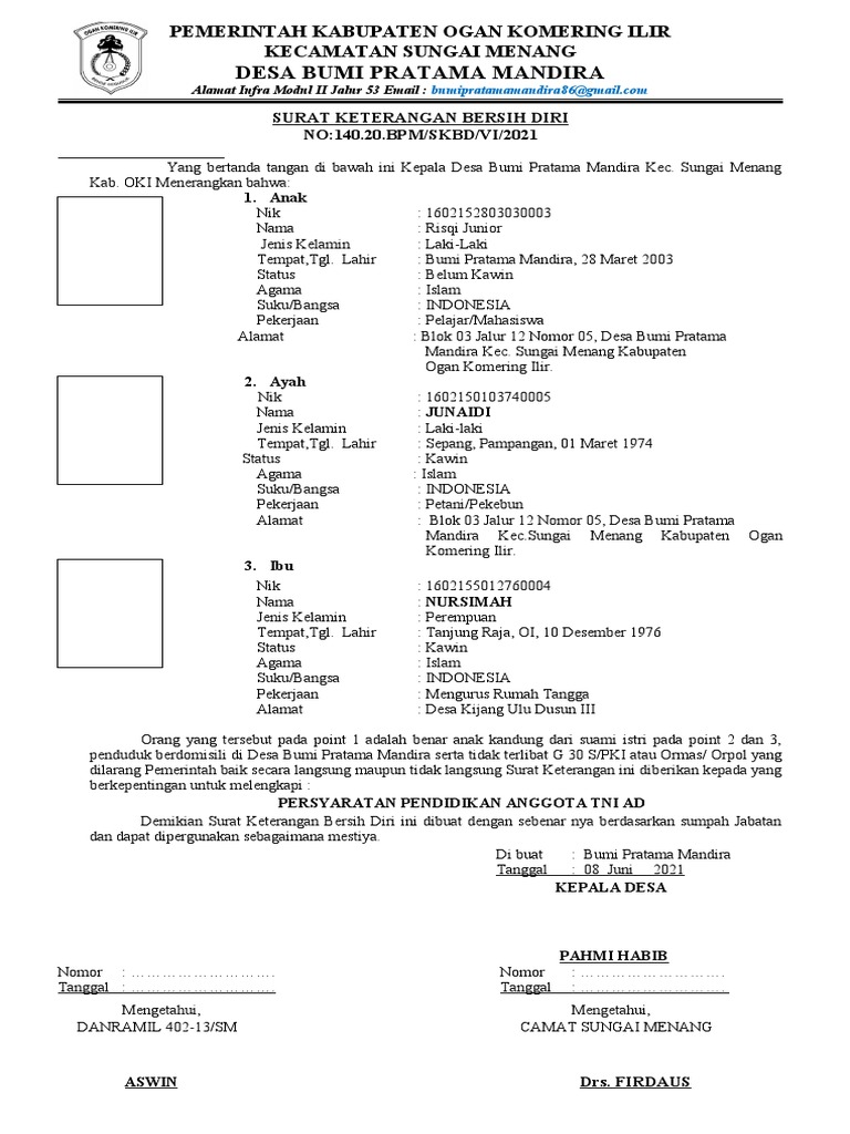 Contoh Surat SKBD TNI AD dari Desa | PDF
