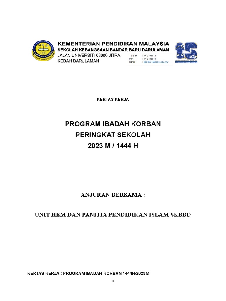 Kertas Kerja Kurban Skbbd2023 | PDF