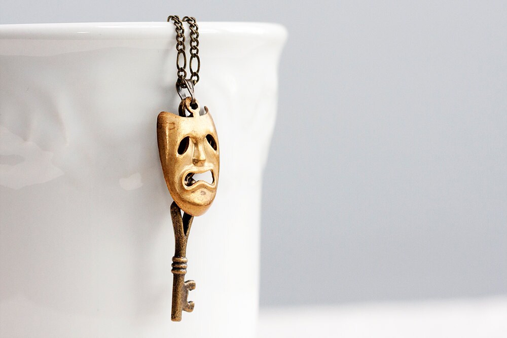 Whimsical Mask Key Necklace – Brass Face, Bronze Skeleton Key - N277 - Etsy