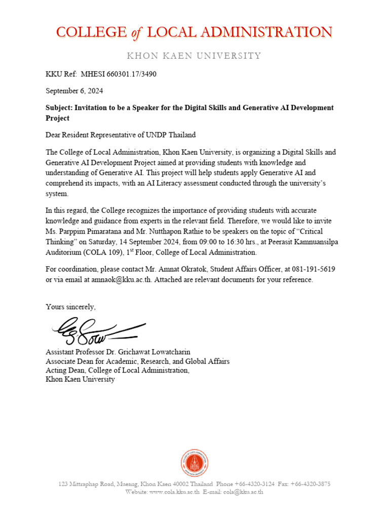 Letter Invitation to be a Speaker for the Digital Skills and Generative ...