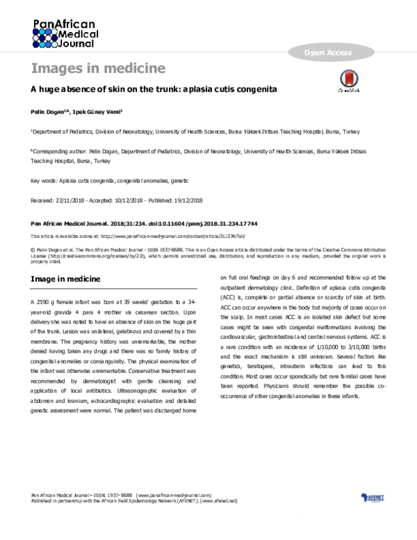 (PDF) A huge absence of skin on the trunk: aplasia cutis congenita