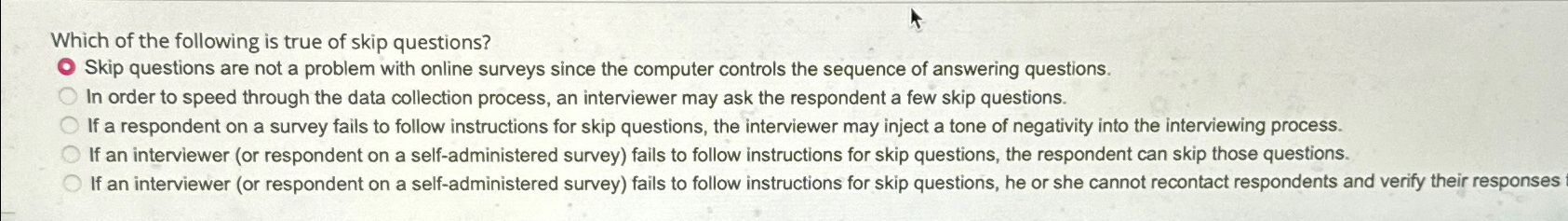 Solved Which of the following is true of skip questions?Skip | Chegg.com