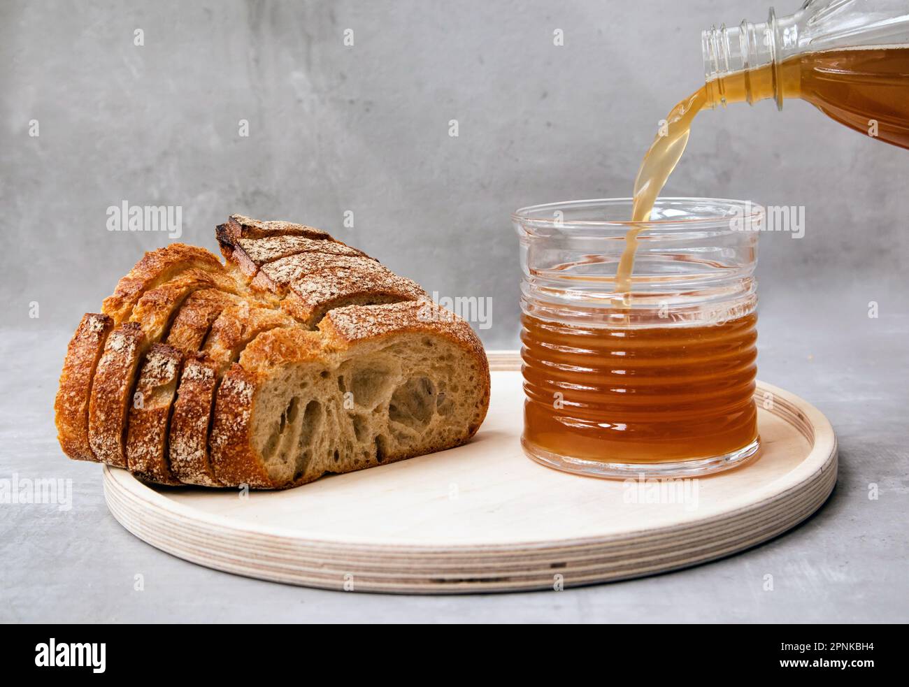 Russian kvass on a cutting board with bread Stock Photo - Alamy