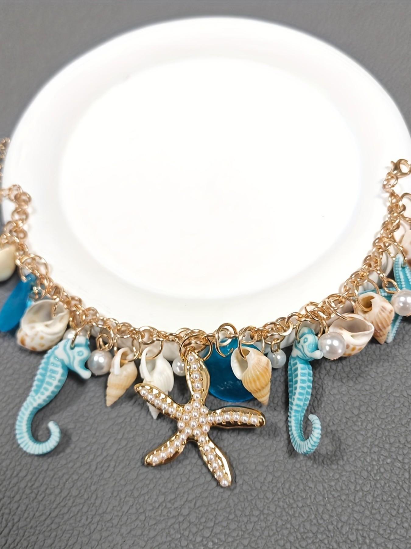 Boho Fashion Faux Shell Starfish Seahorse Pendant Bracelet, Women Beach ...