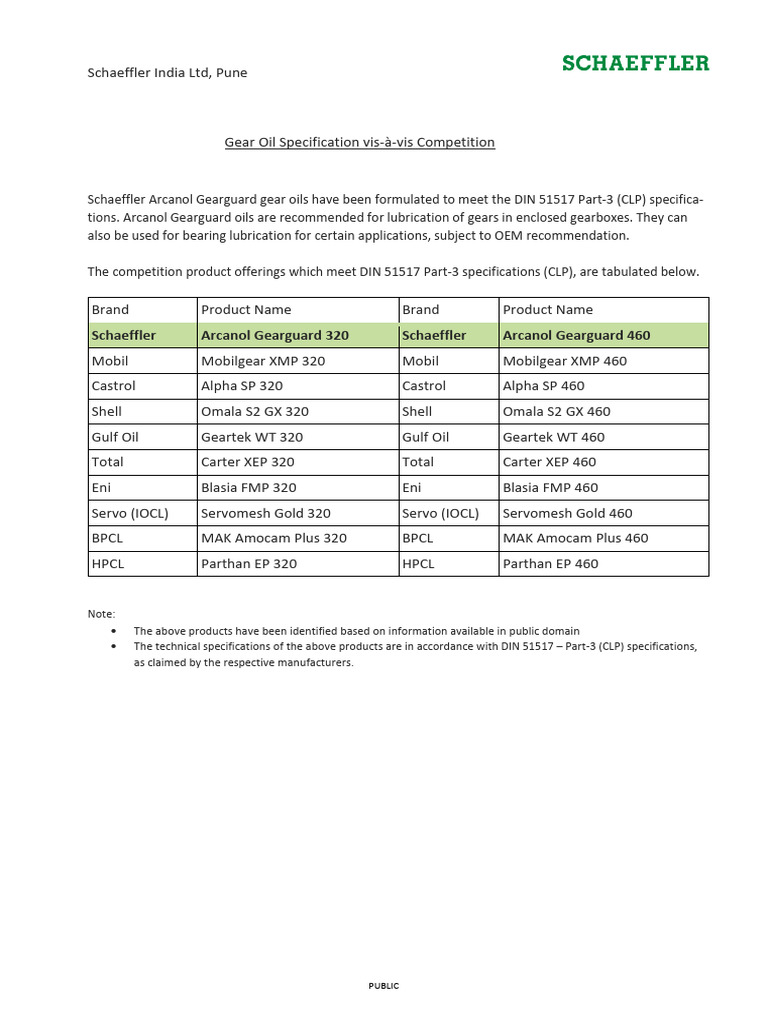 Gear Oil Specification Vs Competition | PDF