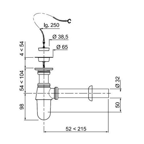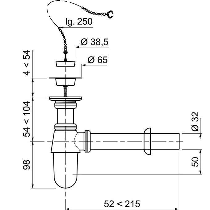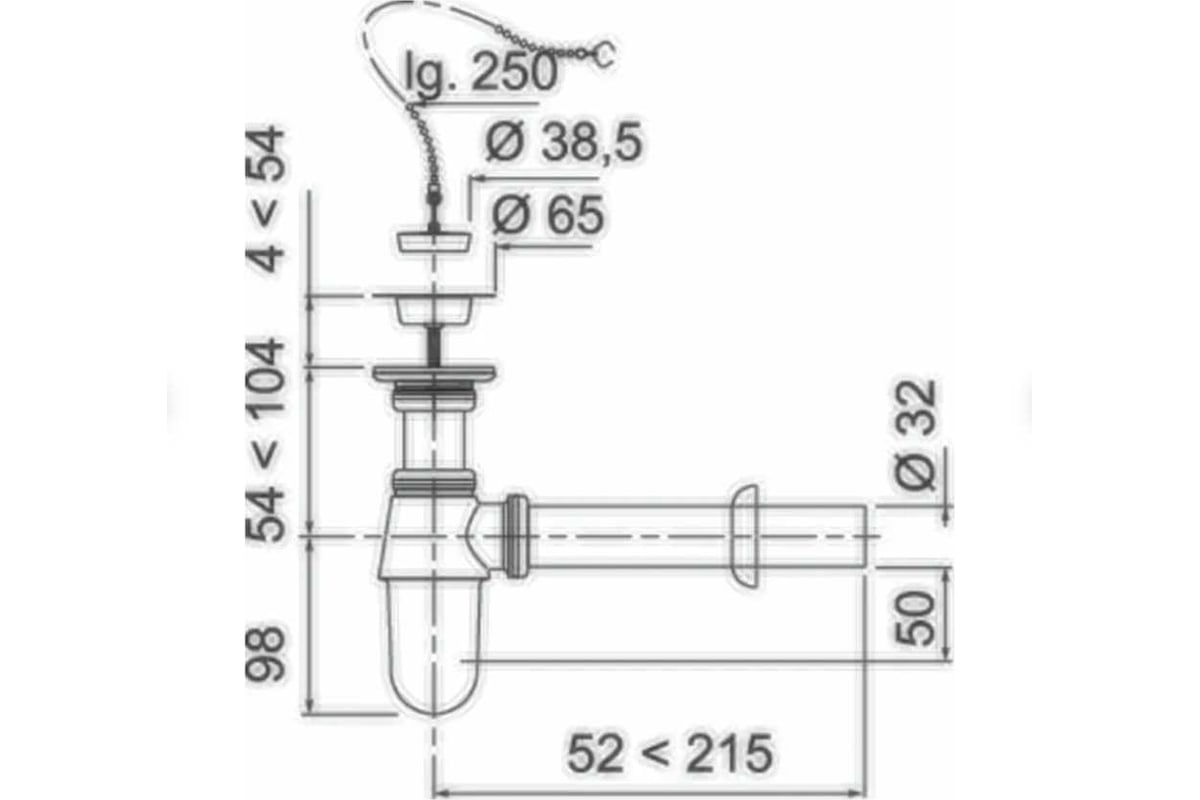 Сифон SL213 1 1/4 x 32 мм с выпуском, отвод с розеткой, пробка с ...