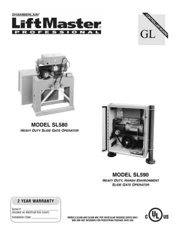 LiftMaster SL580 and SL590 Heavy Duty Slide Gate Operator User Manual ...