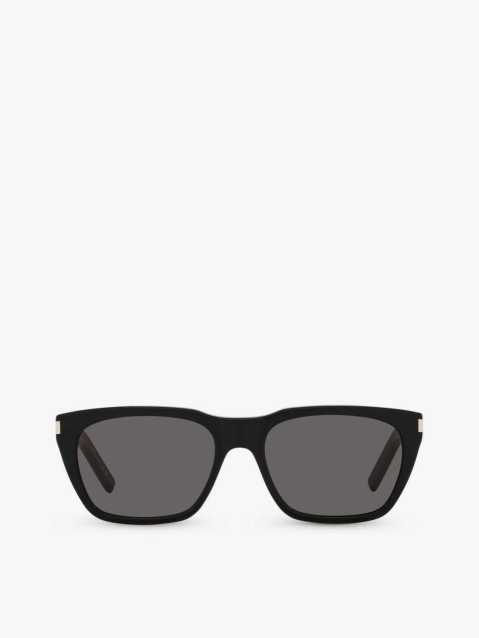 SAINT LAURENT SL598 Rectangle-Frame Acetate Sunglasses in BLACK | endource