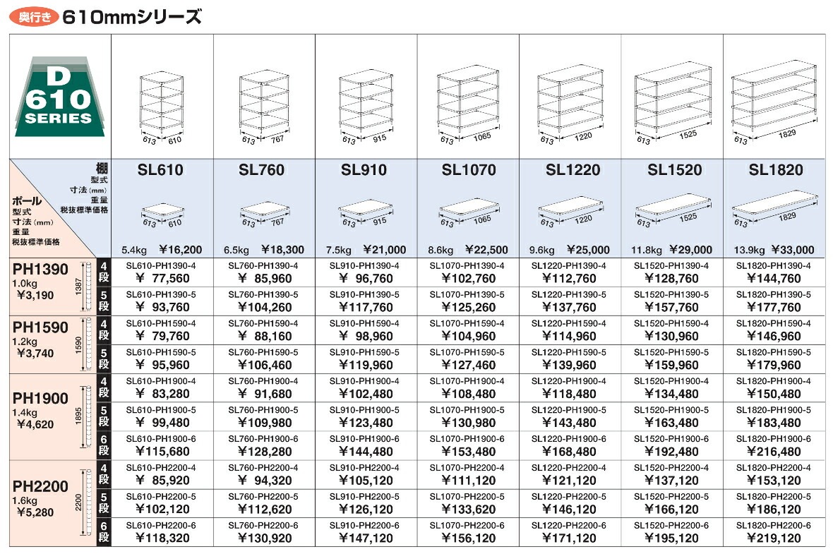 マルゼン SL760-PH1590-4 SUS430 ソリッドシェルフ 610mmシリーズ D610 4段 | シンク・作業台,ソリッド ...
