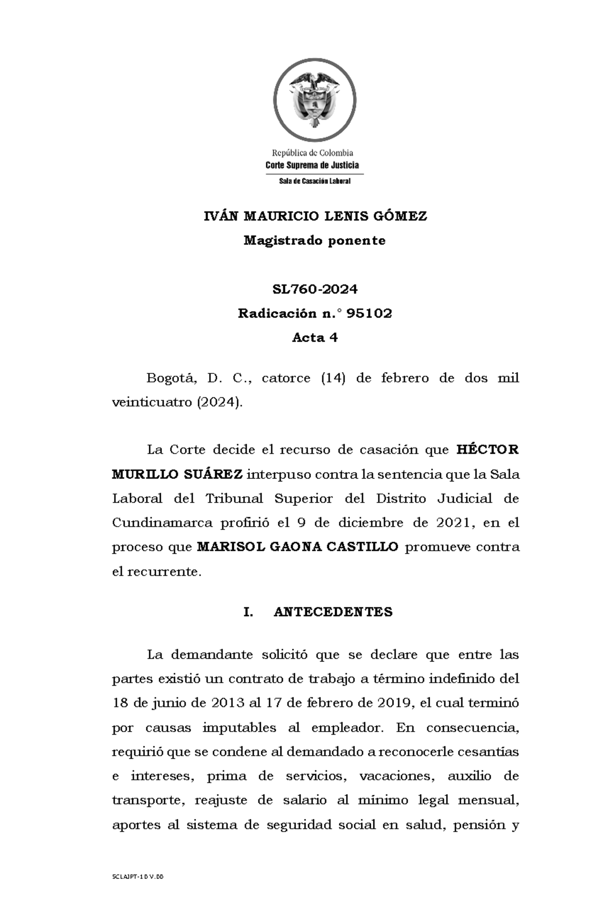 SL760-2024 - Análisis del Recurso de Casación en Derecho Laboral - Studocu