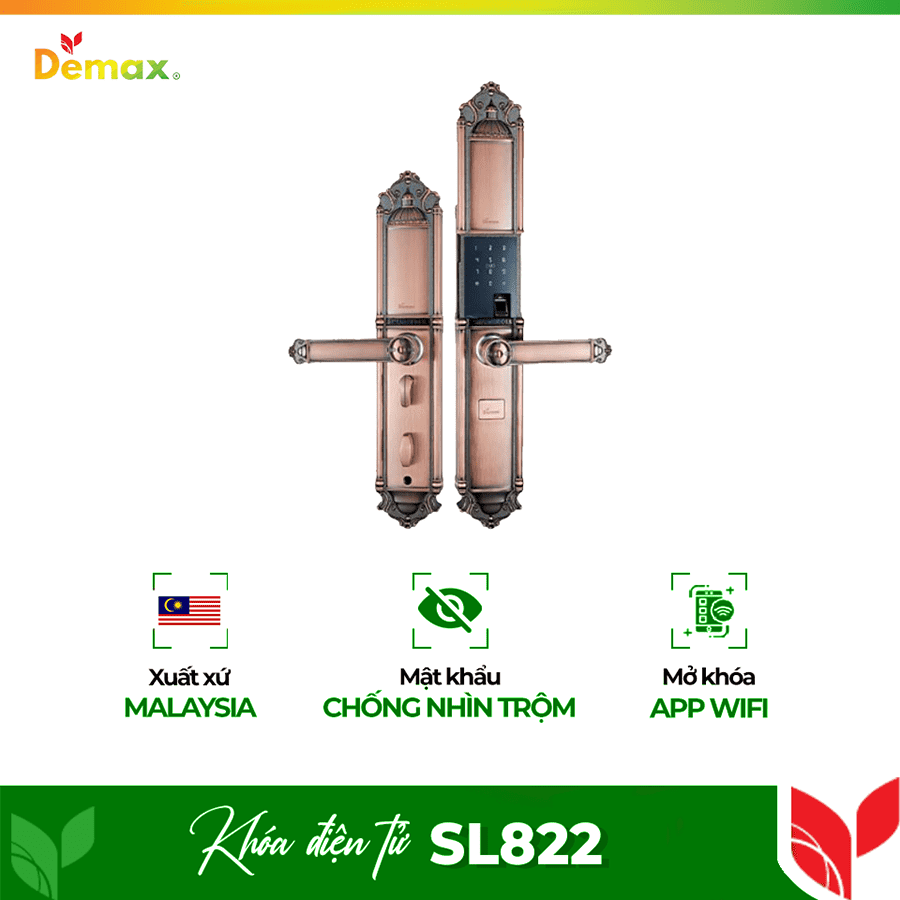 Khóa Thông Minh Đại Sảnh Demax SL822 GOLD | Lock Home VN