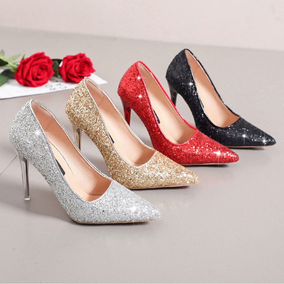 Jual SL822 READY 4 WARNA-BLACK.SILVER,GOLD,RED-10cm HEELS GLITTER-HEELS ...