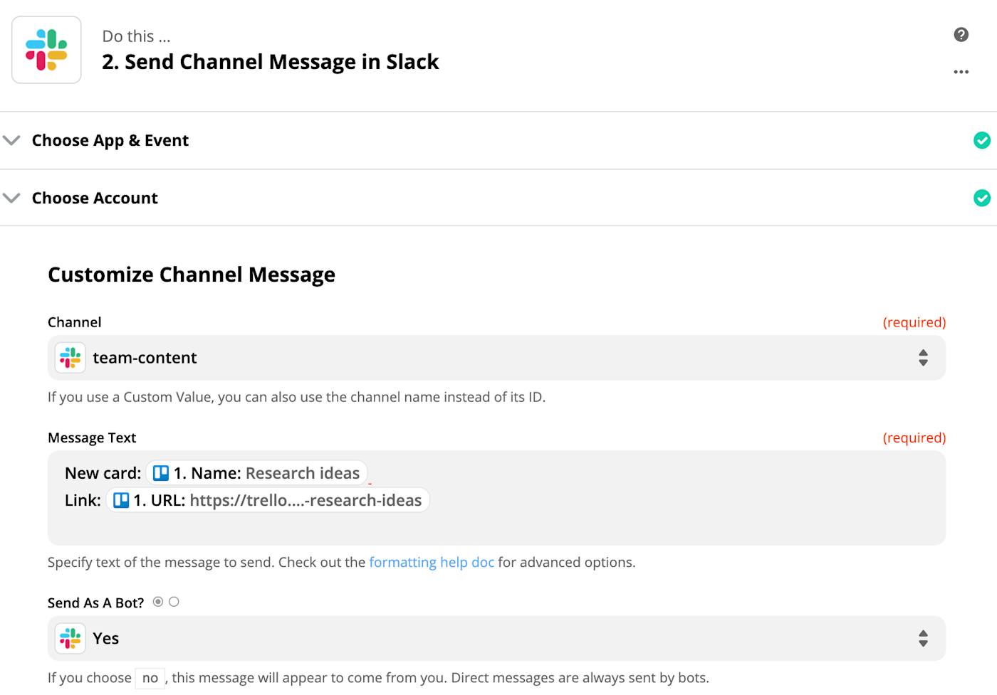 How to format a Slack message in Zapier