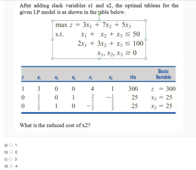 Solved After adding slack variables sl and s2, the optimal | Chegg.com