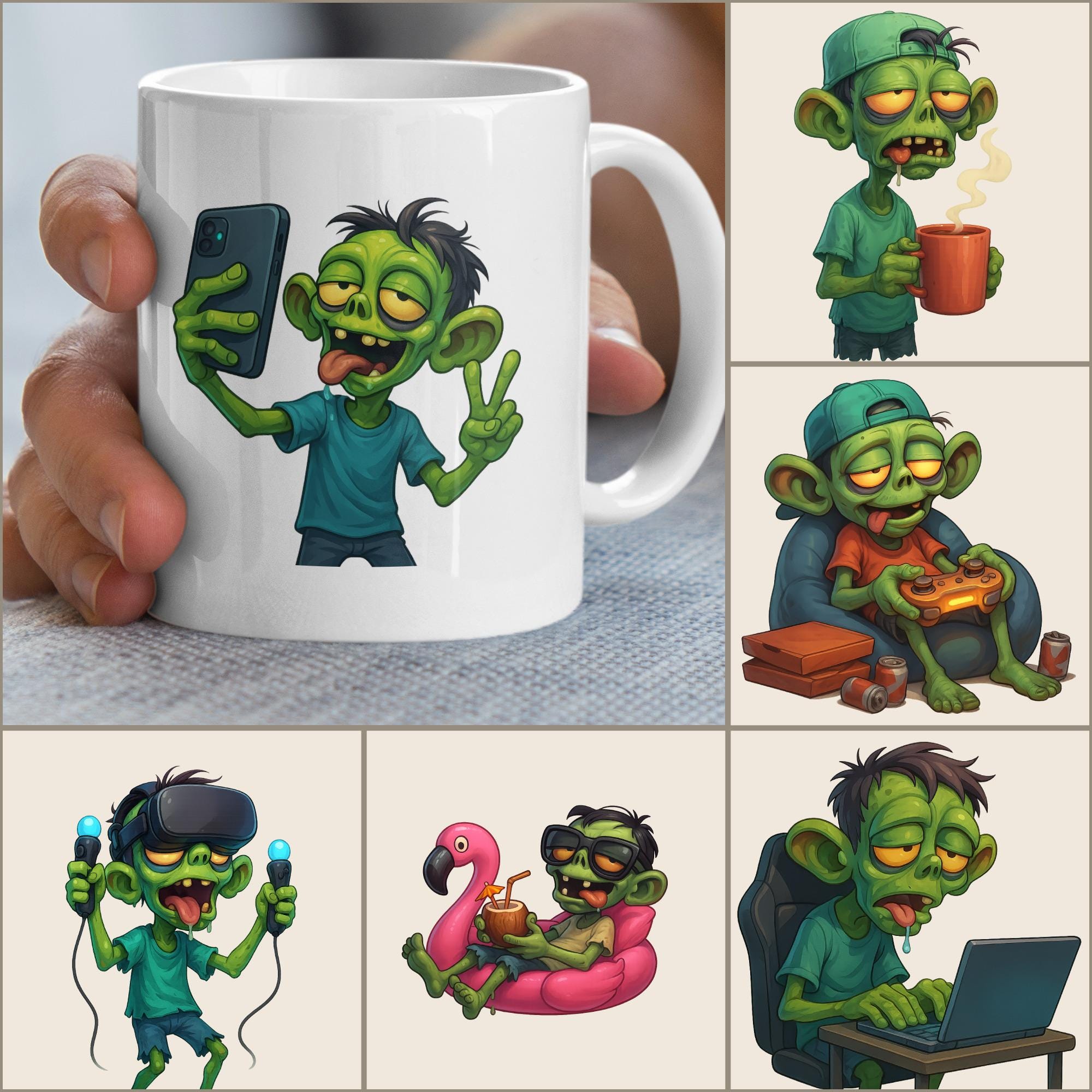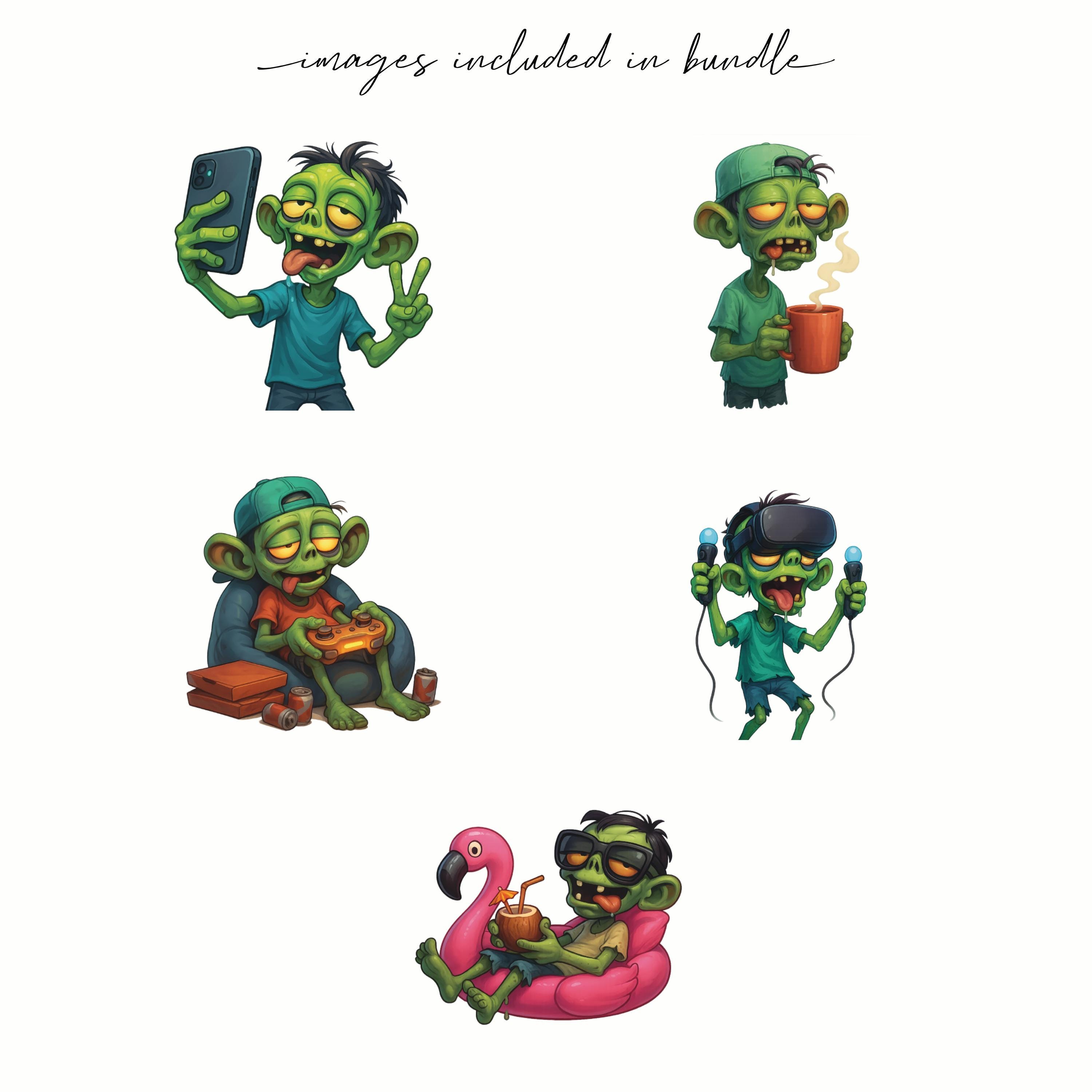 Slacker Zombie Clipart Digital PNG Bundle, Gamer Zombie Graphics Set ...