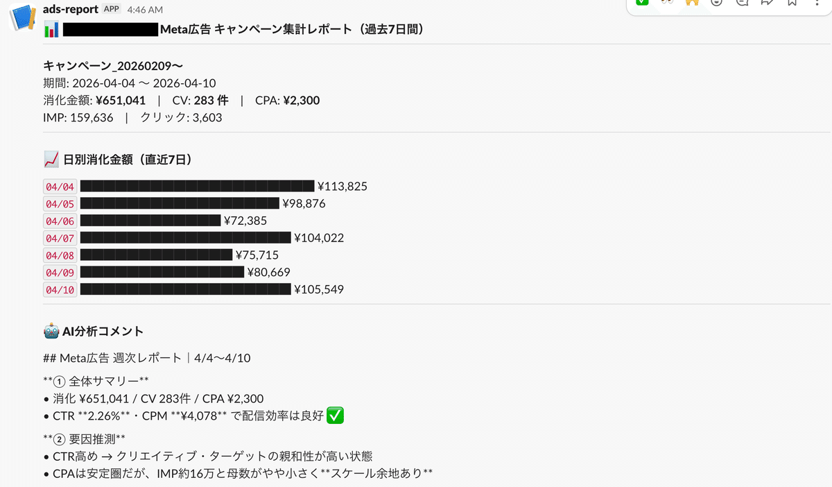 Meta広告のレポートが毎朝9時に自動でSlackに届くようにした話|吉武隼仁 | craftbit Inc.