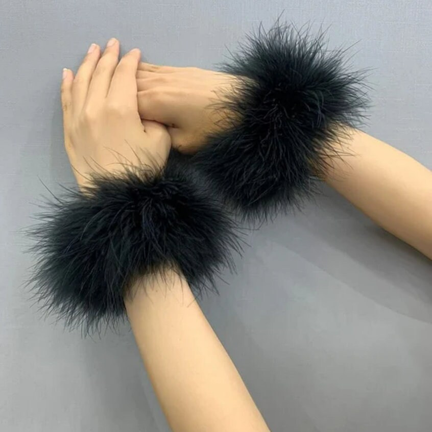 Ostrich Feather Slap Bracelet Set - Fluffy Wrist Cuffs, Arm Cuff ...