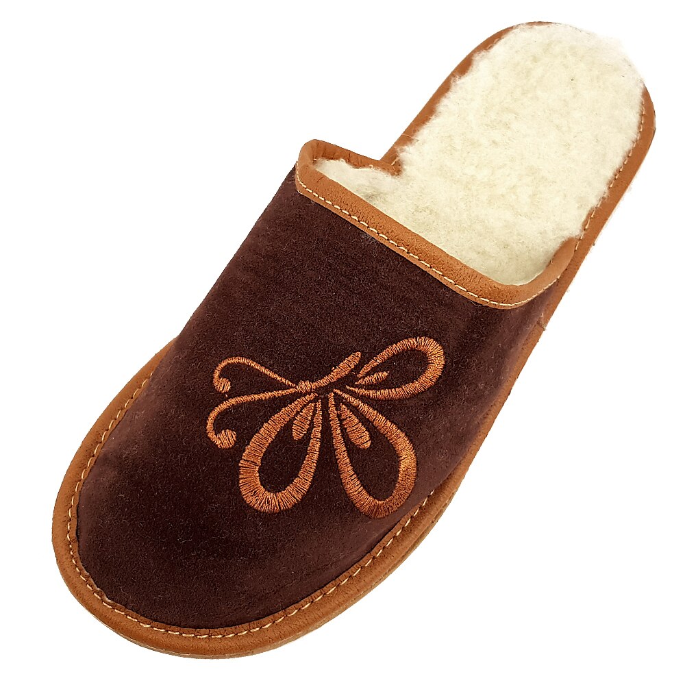 Slapi Dama, Model 'Free Butterfly', Imblaniti cu Lana, Culoare Maro ...