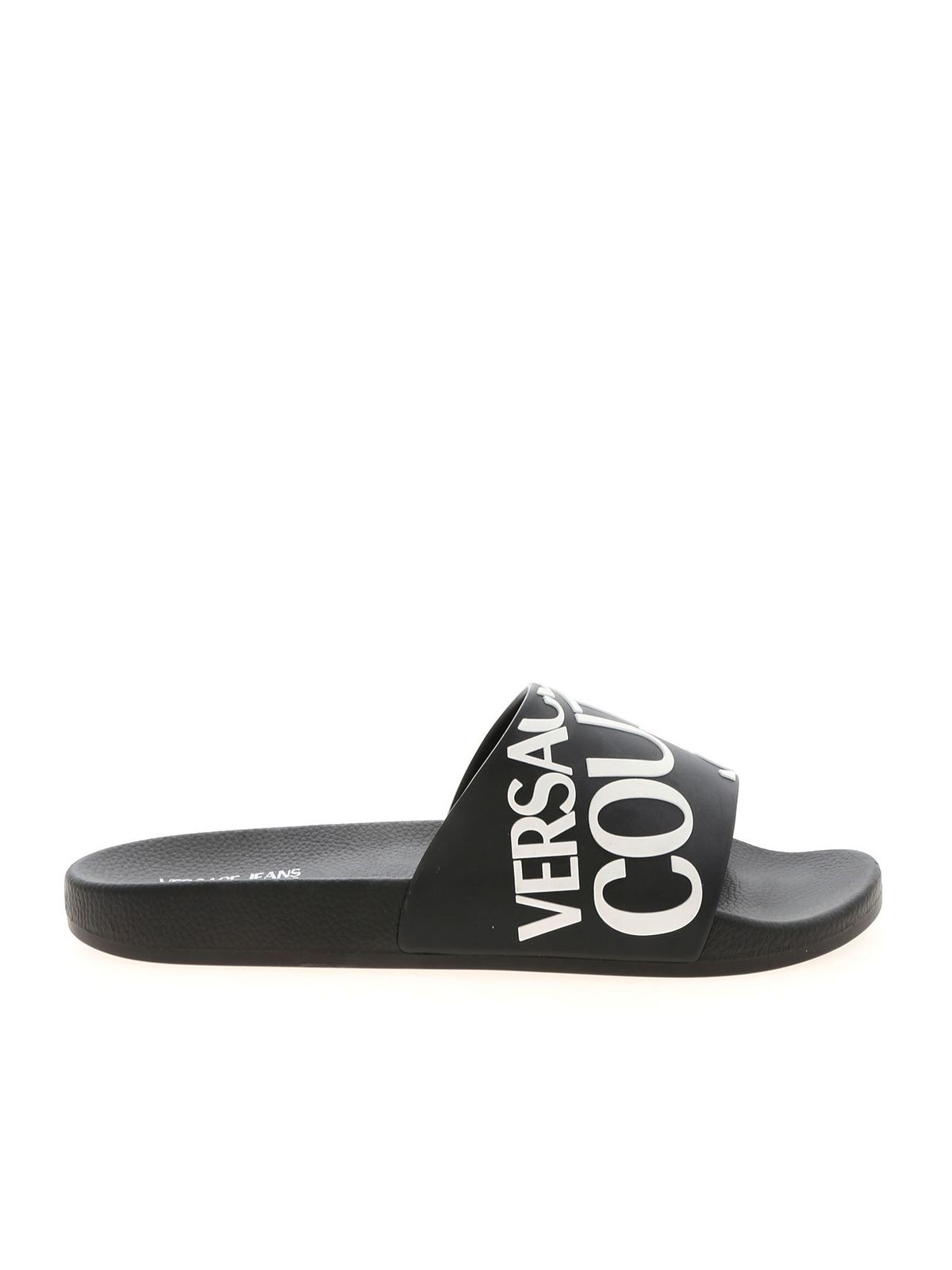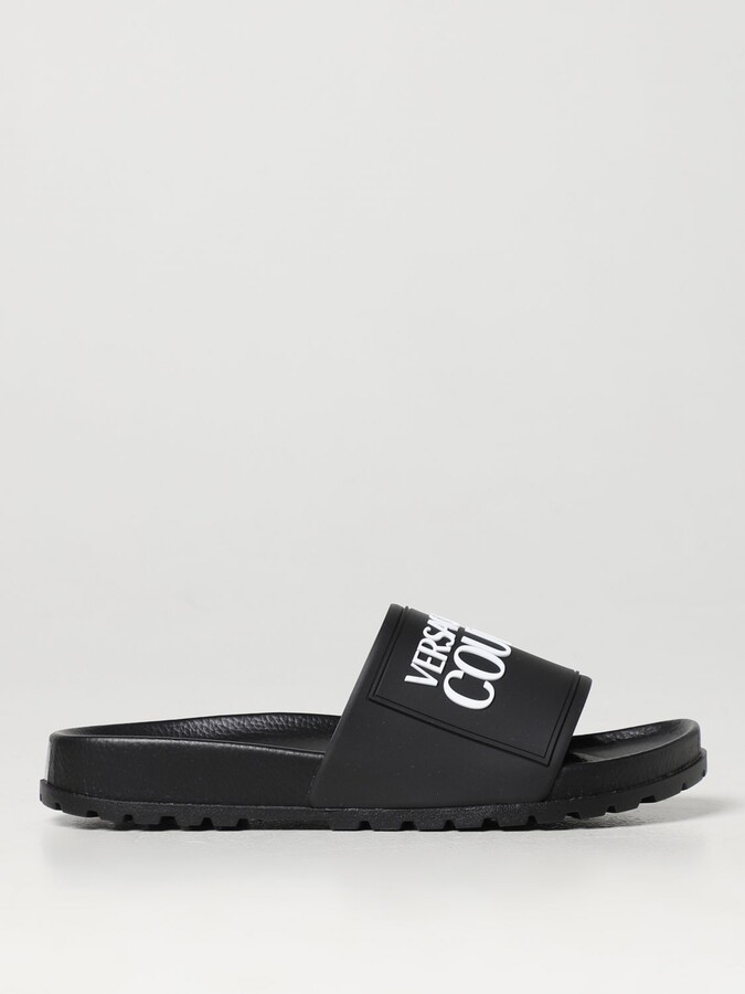 VERSACE JEANS COUTURE: slipper sandals with logo - Black | Versace ...