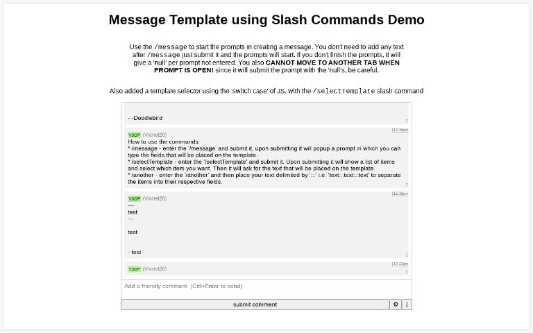 Message Template with Slash Commands ― Perchance Generator