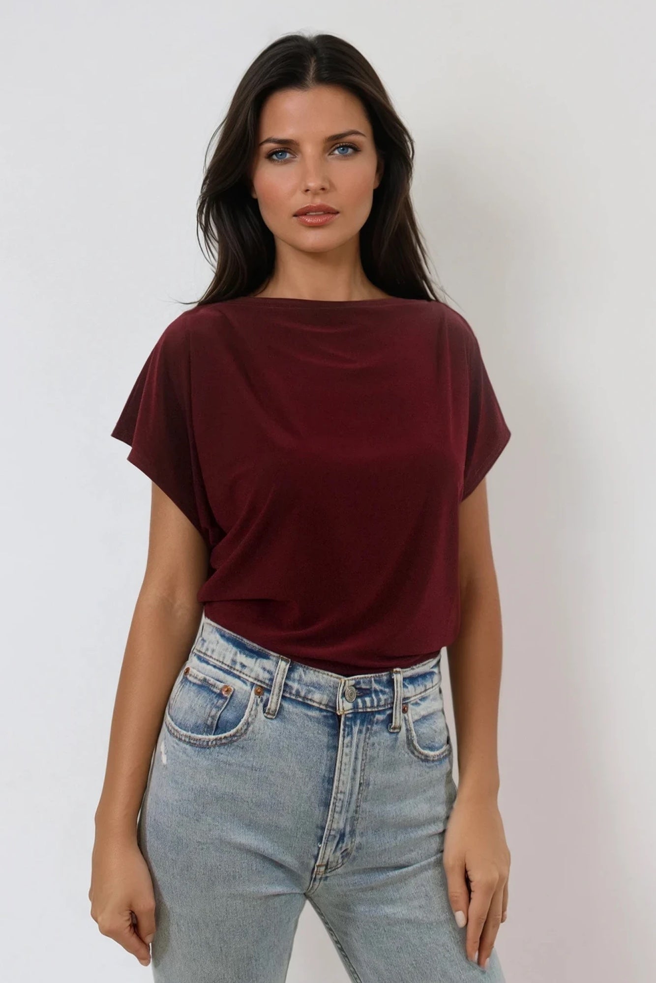 HONOR GOLD | FINLEY BERRY BATWING TOP WITH SLASHED NECKLINE – Honor Gold