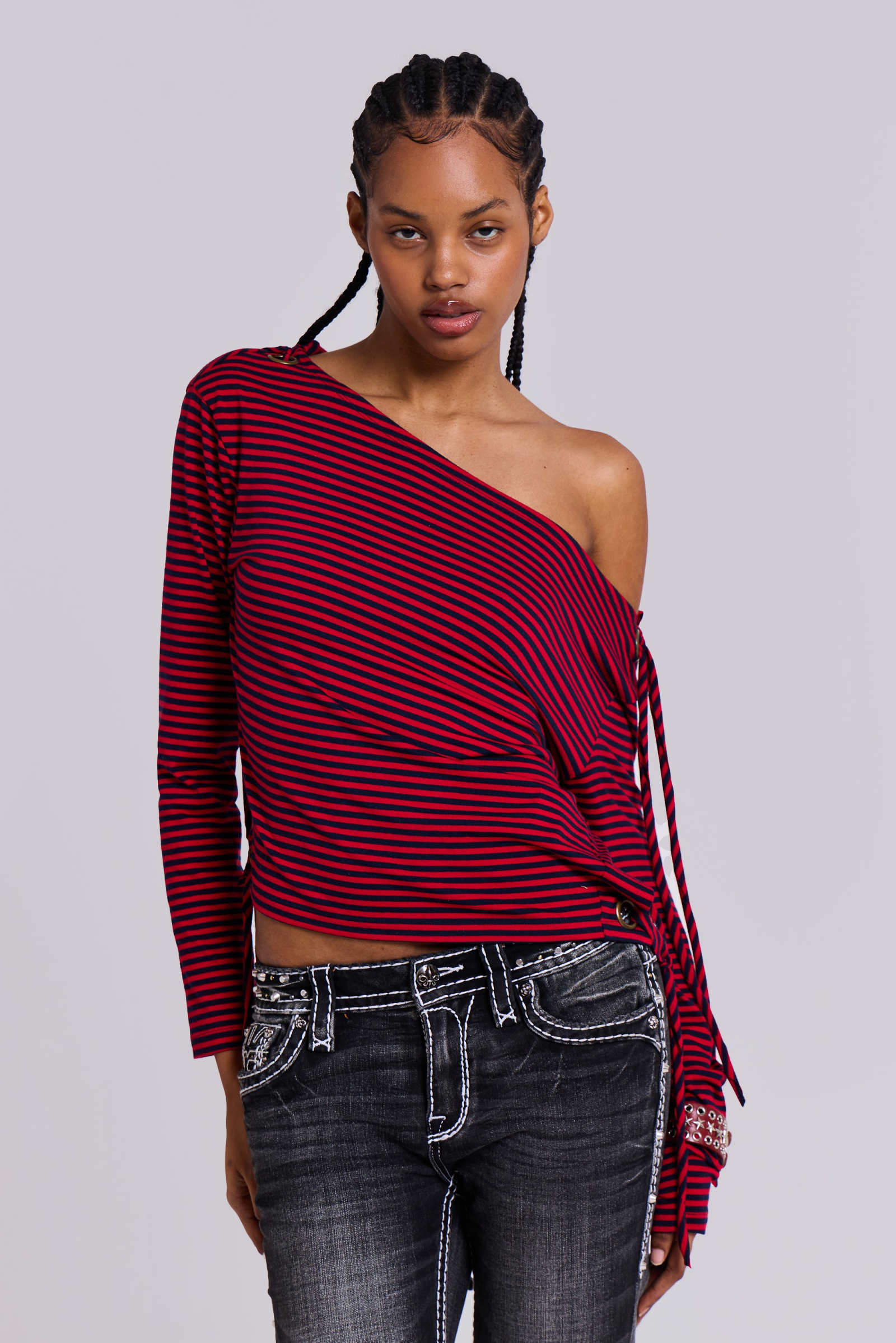 Gaia Slashed Backless Stripe Top | Jaded London | Clothing