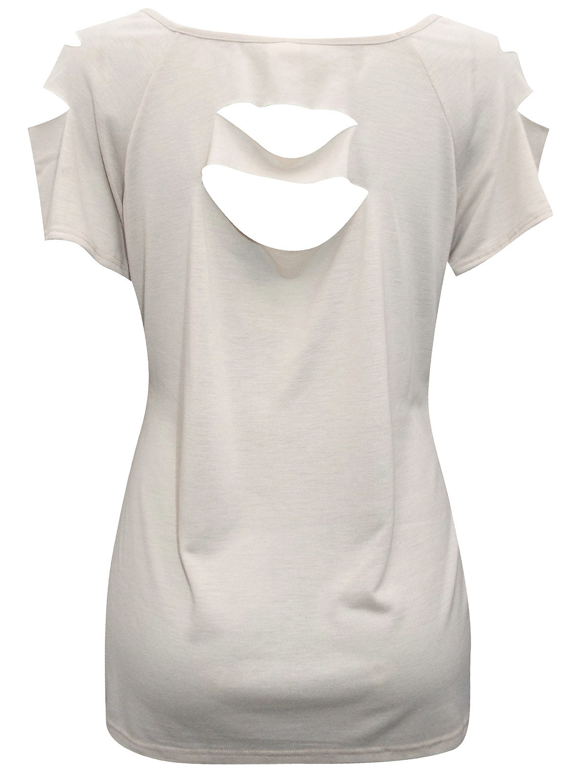 Slashed Back Short Sleeve Tee BLACK | MakeMeChic.COM - Distressed T ...