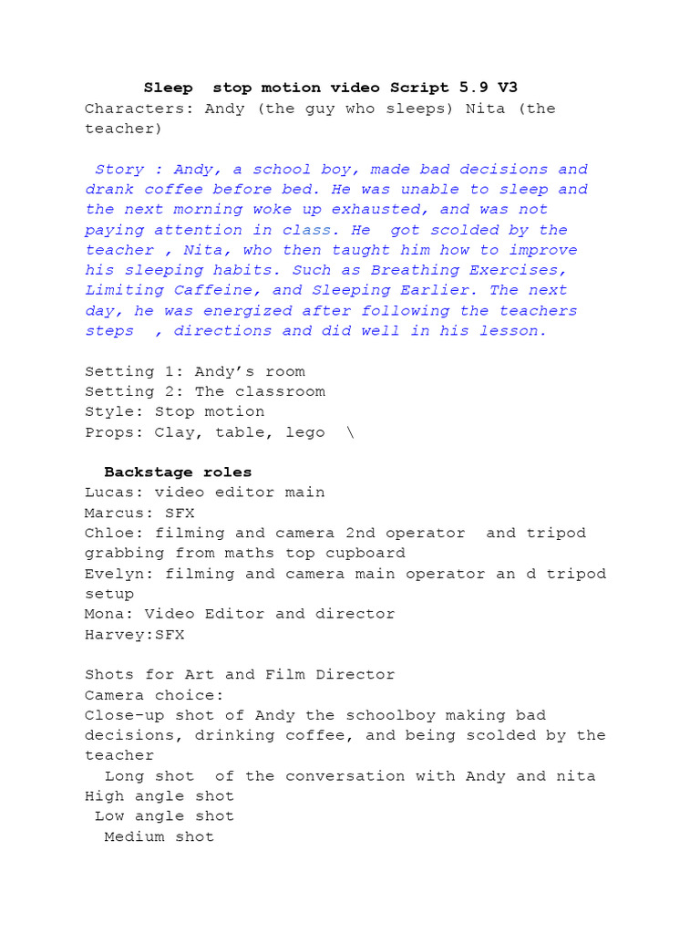 Sleep stop motion video Script script | PDF