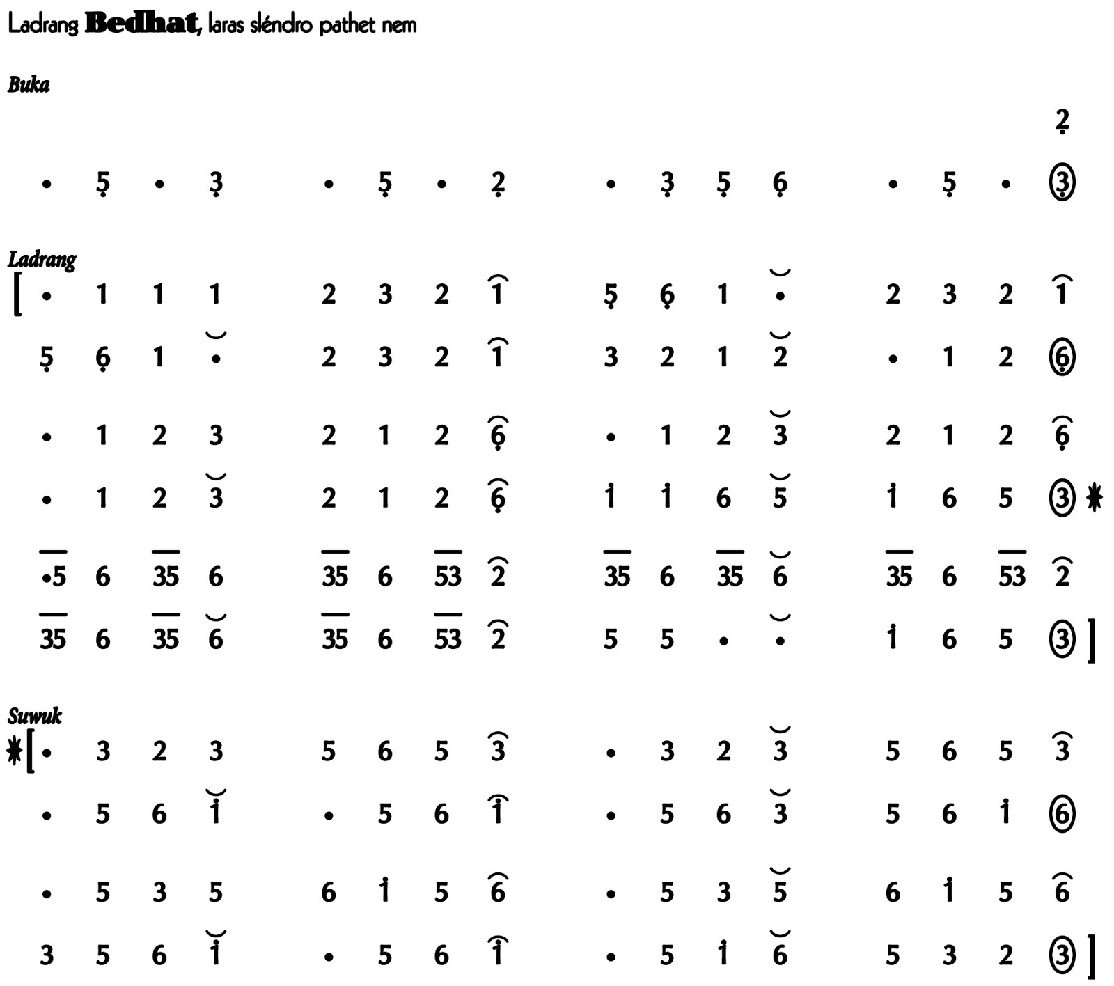 Notasi Ladrang Bedhat Slendro 6 » Not Angka Jawa