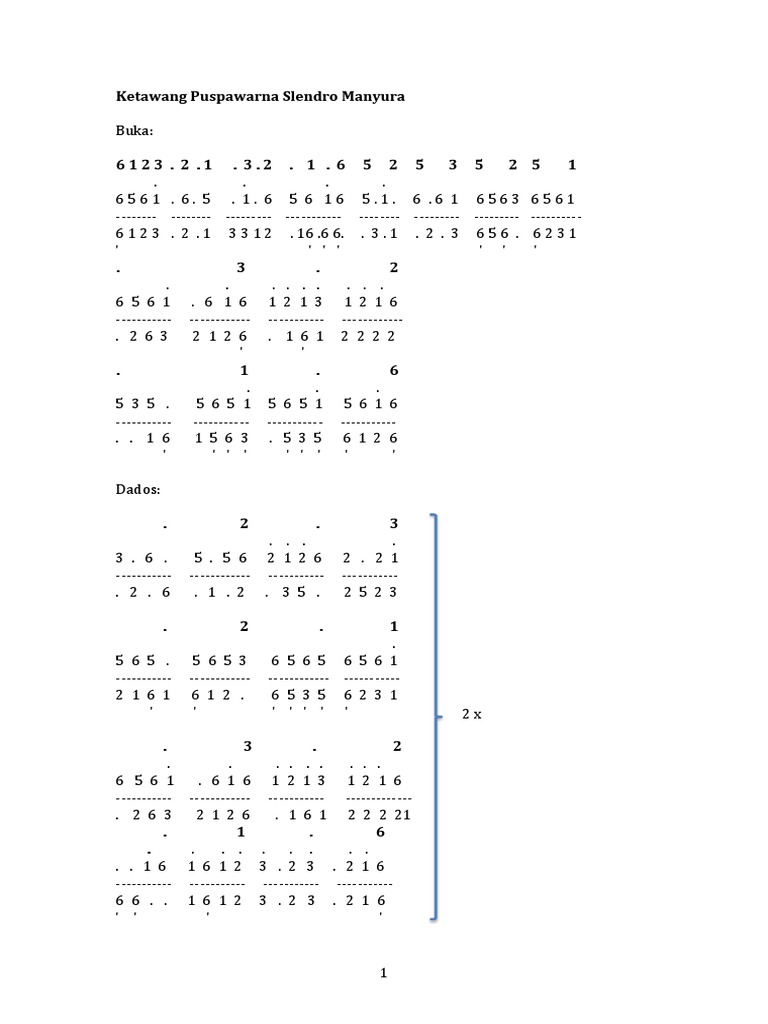Notasi Ladrang Slamet Slendro Manyura, Wilujeng Pelog Barang Dan Pelog ...