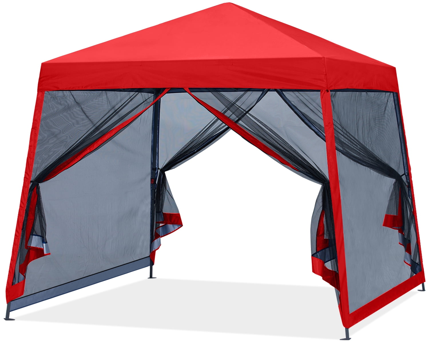 MASTERCANOPY 10' x 10' Pop Up Slent Leg Canopy with Screen Netting, Red ...