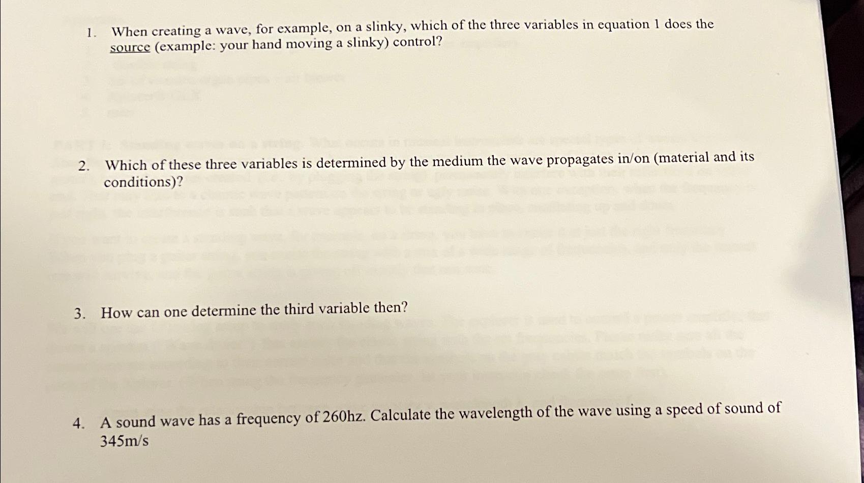 Solved 1. When creating a wave, for example, on a slinky, | Chegg.com