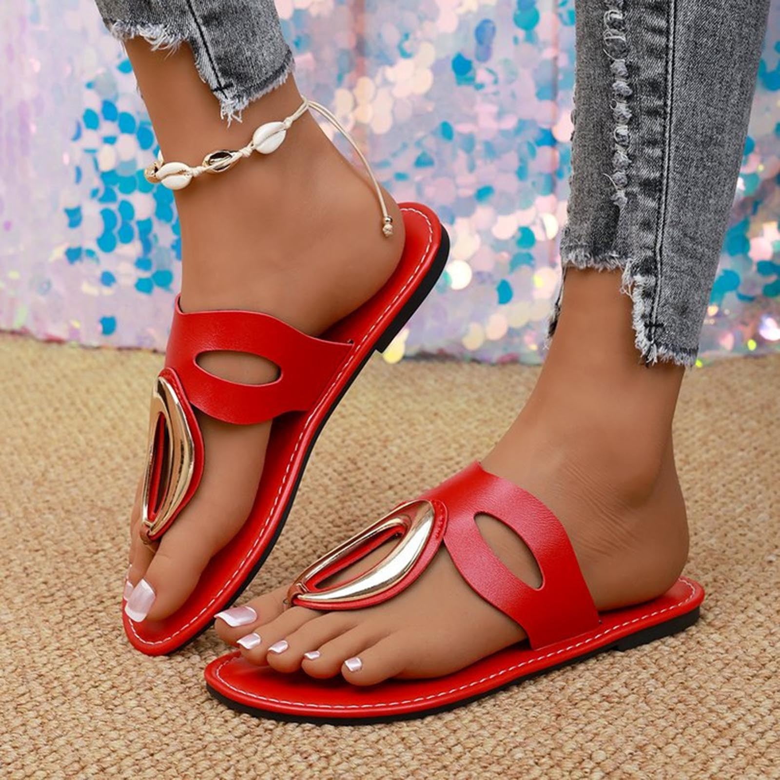 Bnwani Slides Women,Womens Slides,Toe Loop,Wide,Beach,Casual,Red,6.5 ...