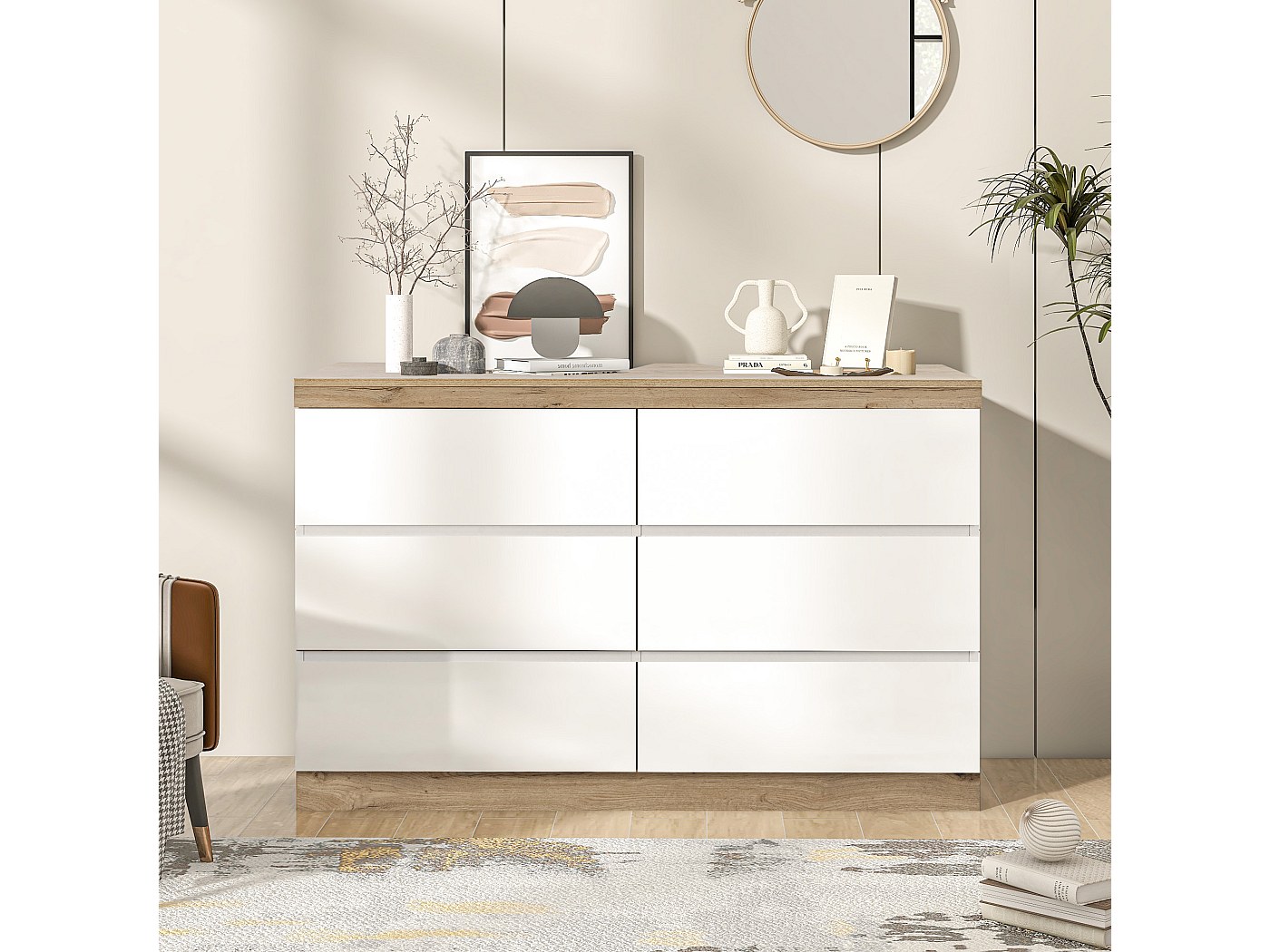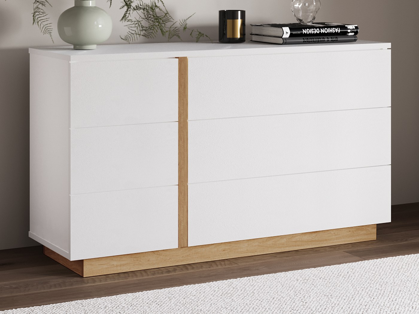 Commode 6 tiroirs en coloris blanc et naturel - NAPOLI II