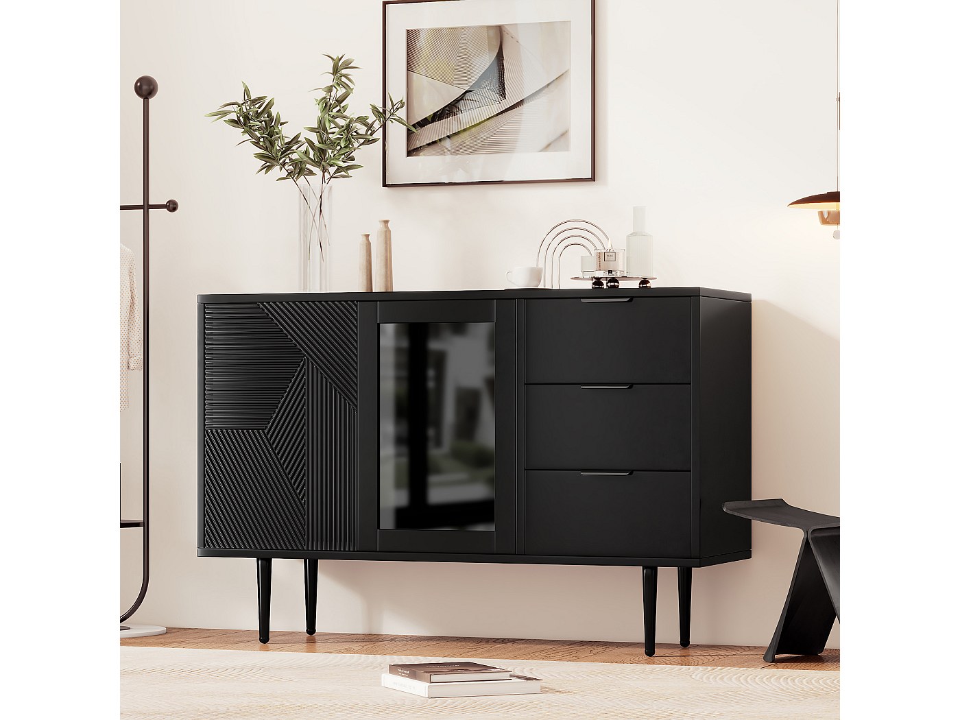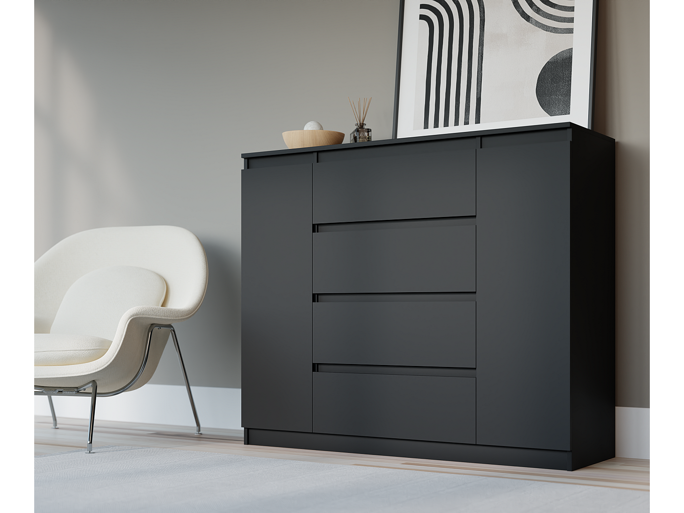 Commode : Noir Mat, 120 x 39 x 101 cm, 2 Portes, 4 Tiroirs