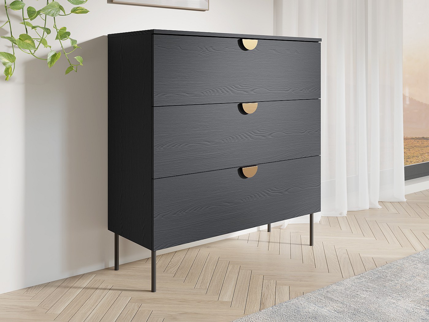 Commode avec 3 tiroirs en coloris noir et doré - NATANIEL