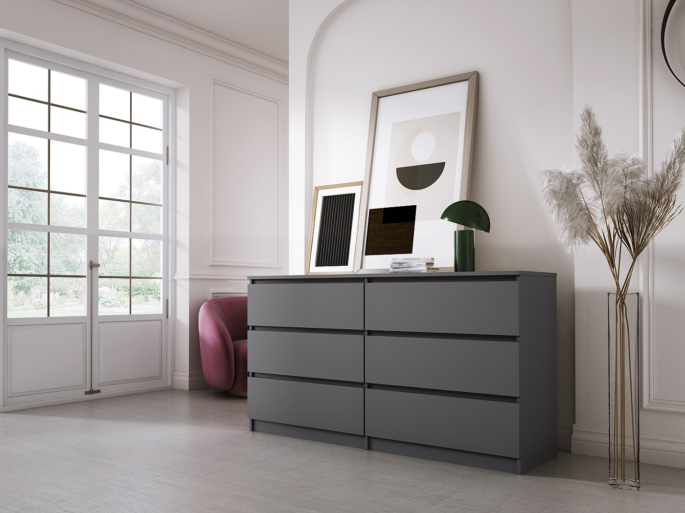 Commode 6 Tiroirs : Anthracite, 138 x 39 x 79 cm