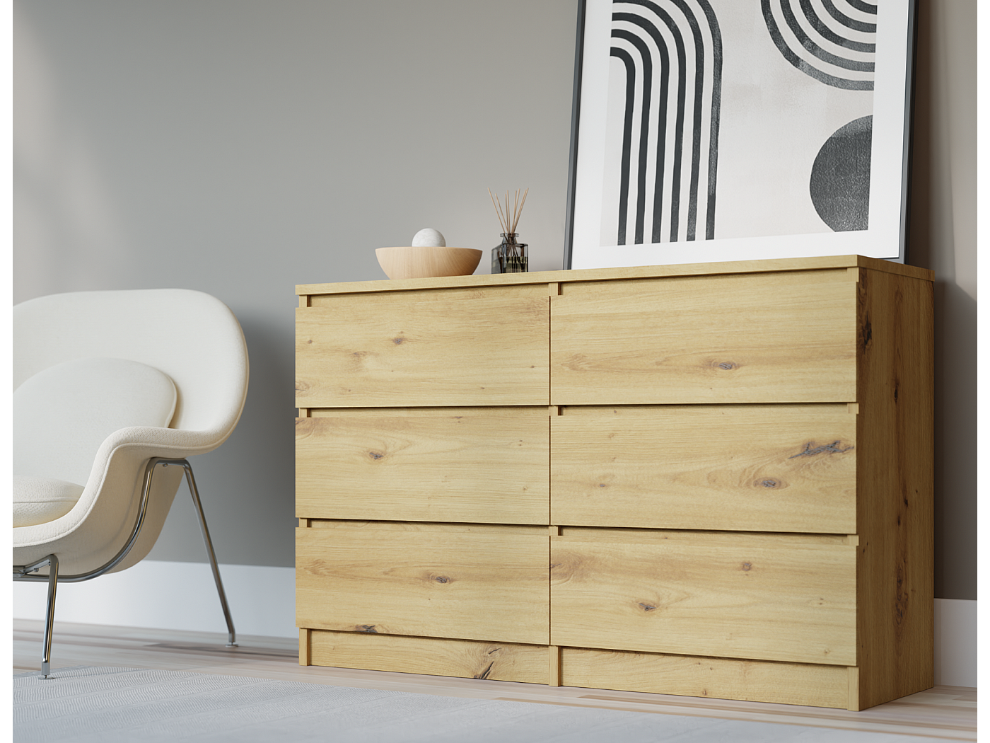 Commode 6 Tiroirs : Chêne Artisan, 120 x 39 x 79 cm