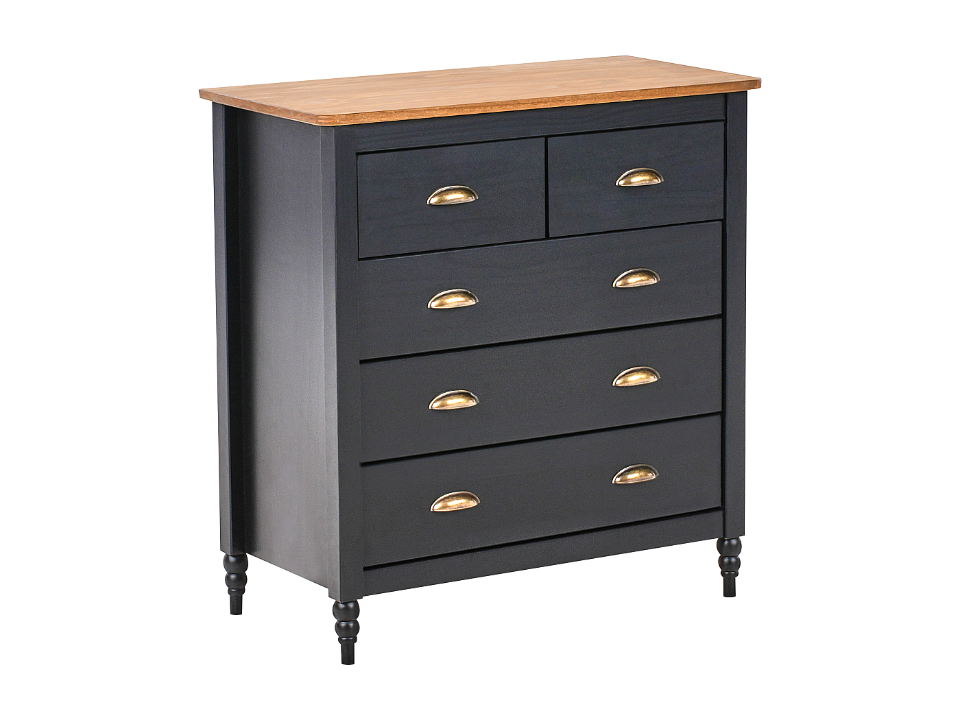 Commode à 5 tiroirs SHILLINGTON Bois de pin Noir
