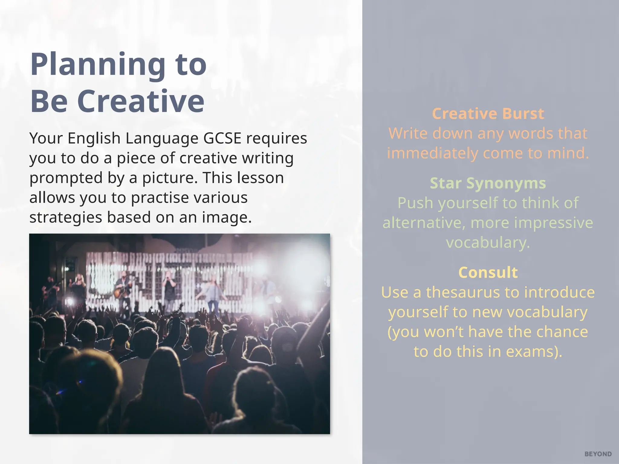 An example of using images for prompts in a slide show discussing ...